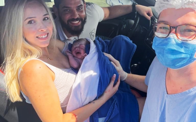 Mãe entrou em trabalho de parto no meio do caminho de 55km entre as duas cidadese só deu tempo para estacionar o carro