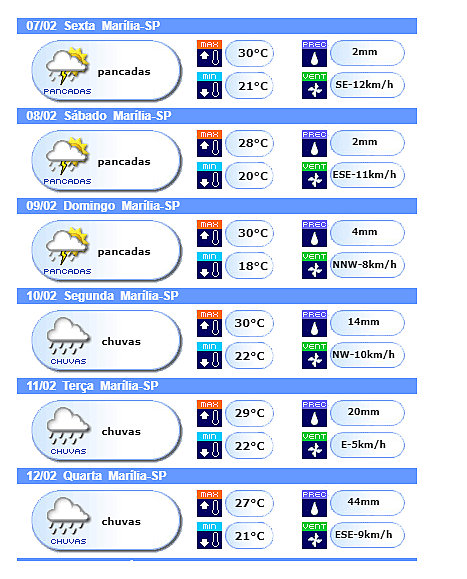 Os próximos dias vão continuar sendo de muita chuva em Marília e região. Enquanto neste fim de semana a quantidade deverá ser pequena , na segunda e terça a expectativa é de um grande volume, podendo chegar a 40 milímetros na quarta-feira, segundo informou a Defesa Civil