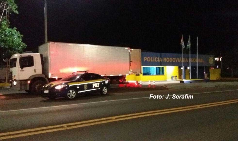 A Polícia Rodoviária Federal apreendeu um caminhão que transportava agrotóxicos avaliados em cerca de R$ 500 mil. Além do transporte irregular, o chassi havia sido adulterado, tudo indicando que era um veículo clonado, possívelmente produto de furto ou roubo. O motorista foi preso em flagrante.