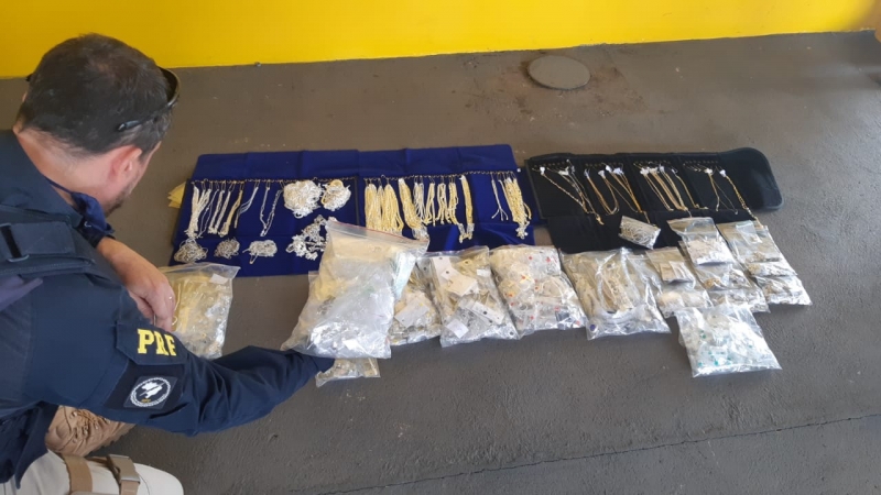 A carga estava distribuída em 22 volumes, transportados por um homem de 45 anos em um Renault Sandero, placas de Feira de Santana-BA. O condutor forneceu informações desencontradas sobre sua origem e destino, motivando com que os policiais realizassem uma revista minuciosa no interior do veículo, resultando na localização dos pacotes de jóias.