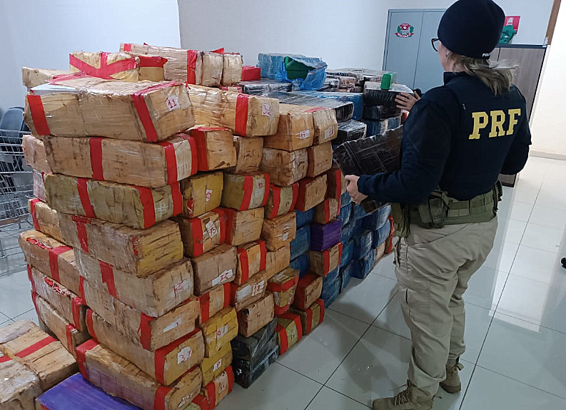 A Polícia Rodoviária Federal apreendeu na noite deste sábado um carregamento que maconha que pode chegar a quatro toneladas. Além da droga foi localizado um fuzil belga calibre 7.62 e 331 munições.