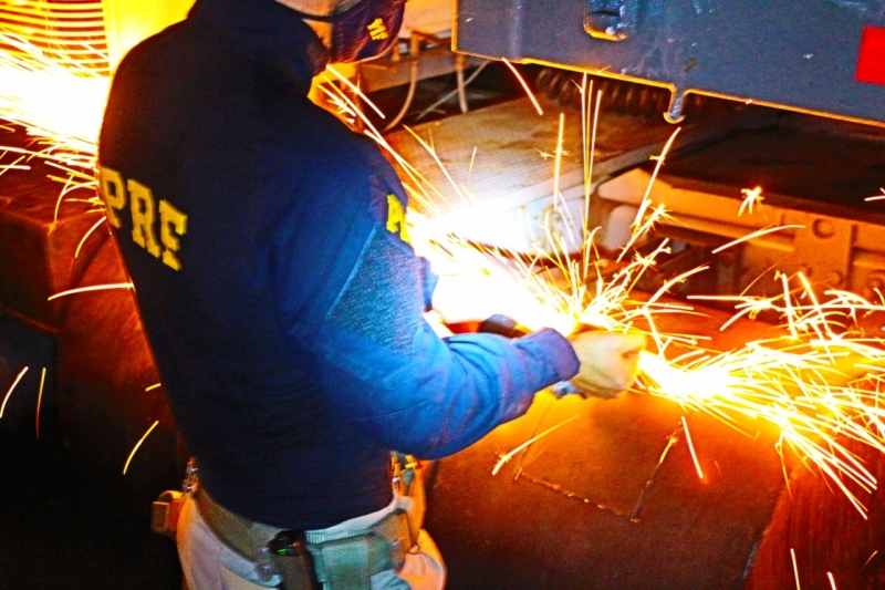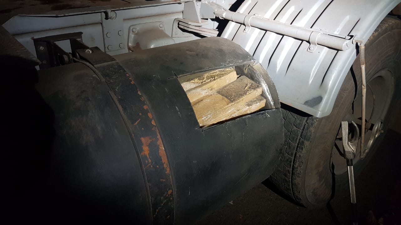 O tanque de combustível do caminhão é confeccionado em aço, de modo que foi necessário o uso de uma serra elétrica para cortar o metal. A pesagem final contabilizou 562 quilos de maconha. Esta apreensão representa um impacto financeiro no crime organizado na ordem de meio milhão de reais.