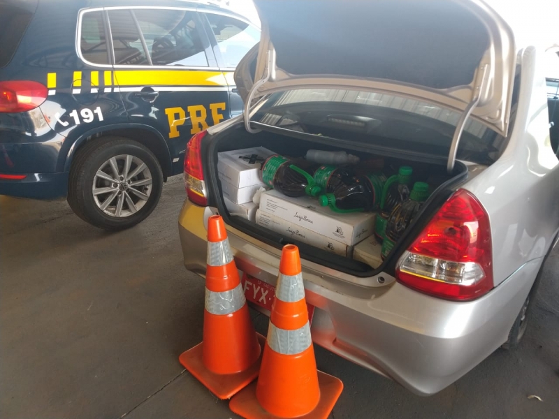 O flagrante aconteceu na manhã da segunda-feira(7), na BR 153. Durante fiscalização, os dois homens estavam no veículo Toyota Etios tipo taxi, com placas de São José do Rio Preto. Eles informaram aos policiais que vinham de Foz do Iguaçu PR, onde teriam ido comprar vinhos importados.