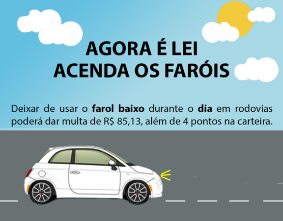 Resposta: Não há necessidade de usar os faróis baixos na rodovia durante o dia se o veículo estiver equipado com as luzes de rodagem diurna (DRL). Os agentes somente podem autuar o veículo se ao observarem o carro de frente, constatarem que os faróis baixos ou o DRL não estão ligados.