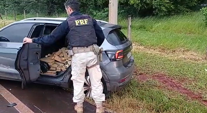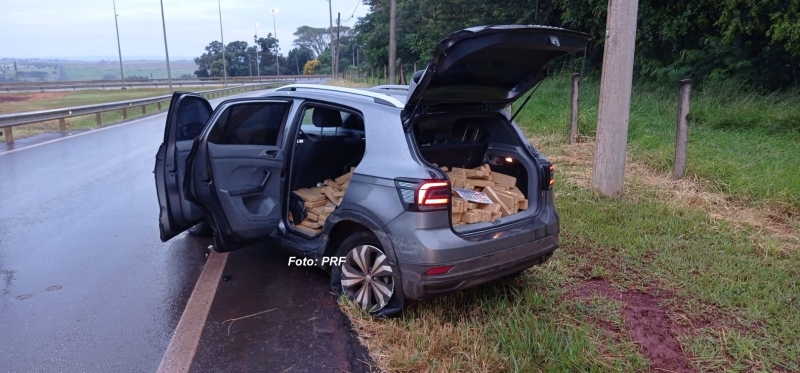 Após uma perseguição de quase 50 quilômetros, a Polícia Rodoviária Federal (PRF) apreendeu nesta sexta-feira, em Ourinhos, quase meia tonelada de maconha. A droga estava sendo transportada em um carro, cujos dois ocupantes conseguiram fugir e estão sendo procurados.