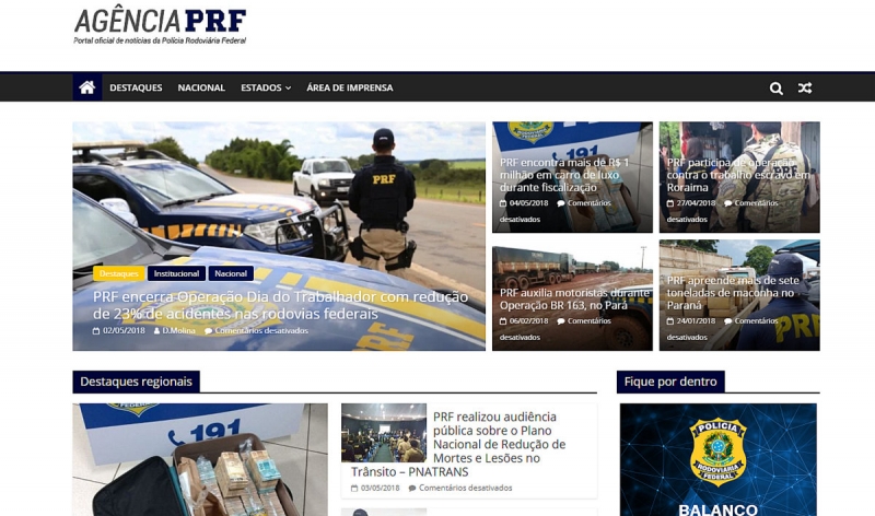 A Polícia Rodoviária Federal (PRF) lançou a nova agência de notícias da instituição para melhor compartilhamento de notícias e mais interação com a imprensa e a população. O novo visual integrado facilita a navegação e a disponibilização de informações sobre os serviços prestados pela PRF.