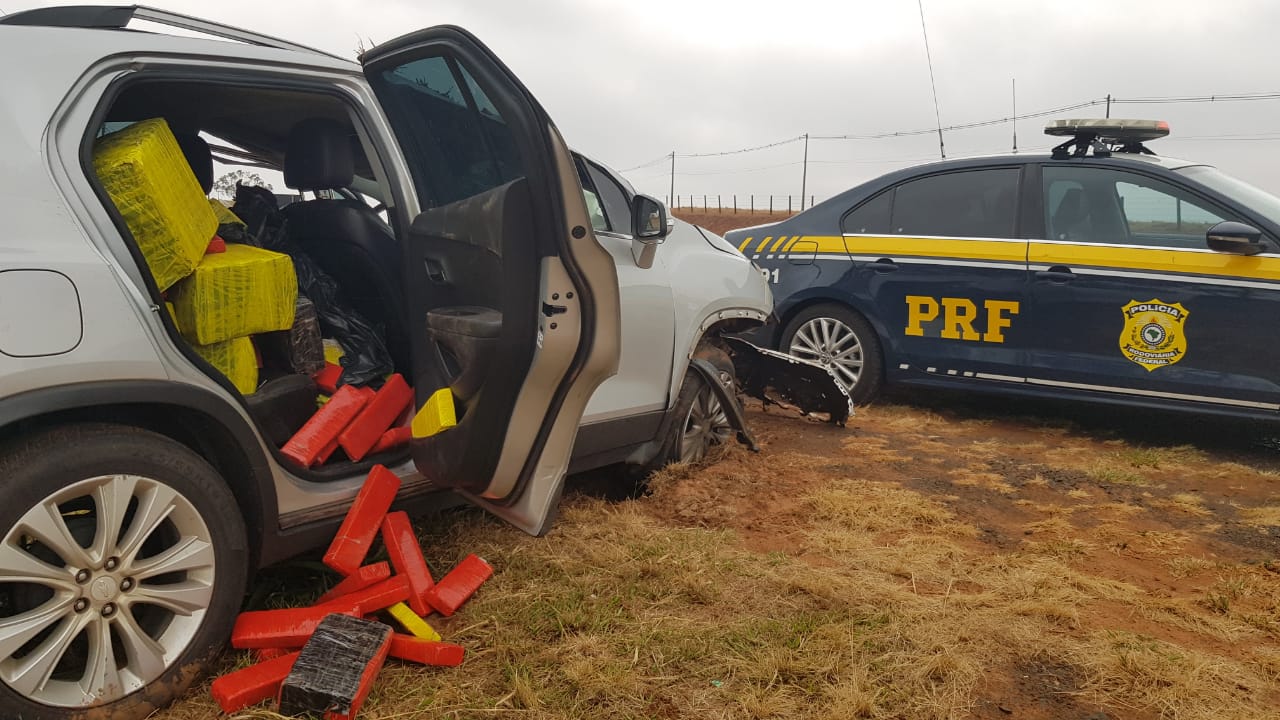Na altura do km 73, o condutor perdeu o controle do veículo e colidiu contra o barranco. Dentro do carro os policiais encontraram 387,9 quilos de maconha, distribuídos em 408 tijolos. O homem que já possui passagem criminal por furto, afirmou que receberia R$ 10.000,00 para levar a droga de Umuarama/PR para Franca/SP.