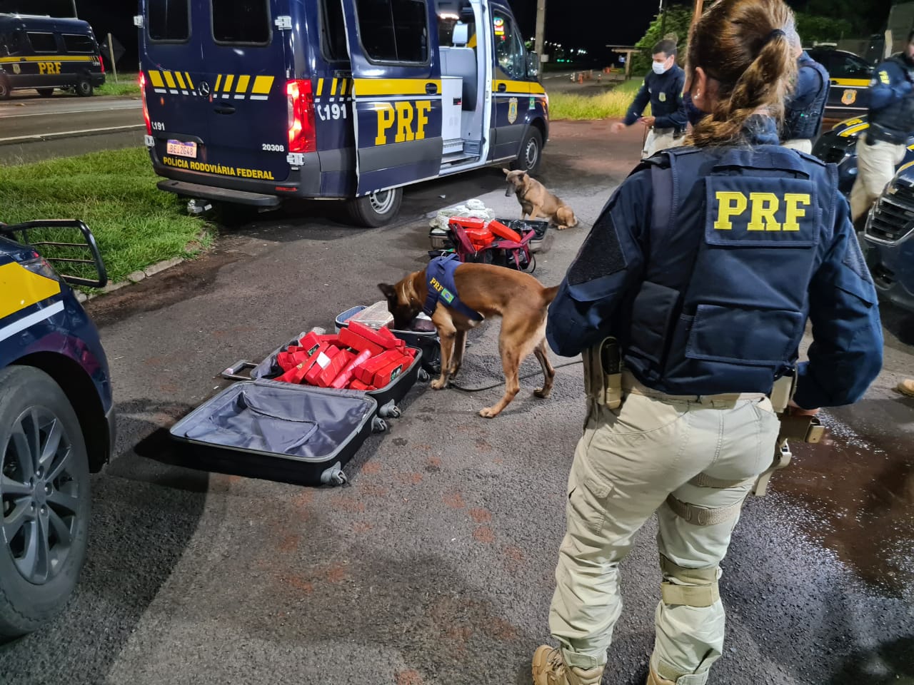 A Polícia Rodoviária Federal realizou na madrugada desta quarta-feira (140), uma fiscalização a ônibus, com ajuda de cão farejador, na BR 153, km 345, em Ourinhos. Passageiros de diversas linhas de ônibus, foram presos com drogas escondidas em malas e sacolas, que eram transportadas nos bagageiros dos veículos.