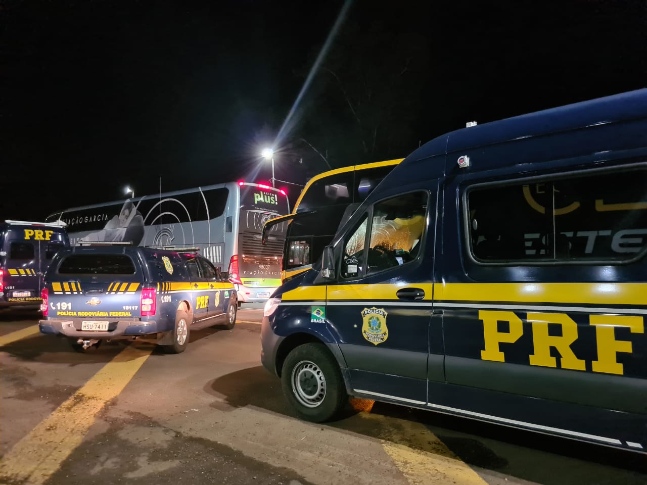 Ação contou com o apoio de três cães farejadores, que detectaram as drogas nos bagageiros dos ônibus. Sete pessoas foram identificadas e retiradas dos ônibus. Entre elas, dois menores, de 17 e 16 anos que transportando maconha.