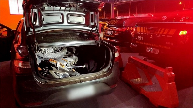 Motocicleta estava desmontada e era transportada no porta-malas do automóvel.