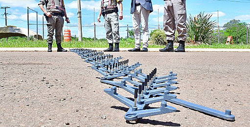 Durante a ação, outra equipe da corporação posicionou uma “cama de faquir”, um dispositivo com agulhas de aço usado para furar pneus e forçar a parada do veículo.
