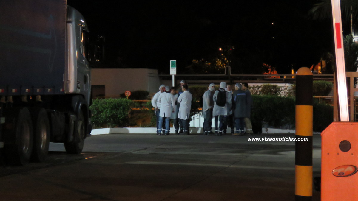 Funcionários das áreas evacuadas aguardam no pátio da fábrica.