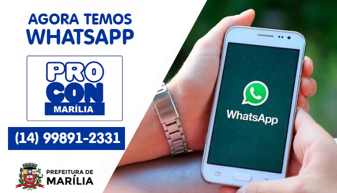 Começou a funcionar, inicialmente em fase experimental, o atendimento do Procon Marília por meio de aplicativo de mensagens instantâneas (WhatsApp).