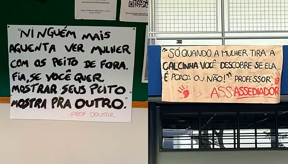 Na época, estudantes colaram vários cartazes em protesto pelo campus da universidade. Dentre as mensagens expostas no campus, que teriam sido ditas pelo professor em sala de aula, estão: "só quando a mulher tira a calcinha, você descobre se ela é porca ou não" e "ninguém aguenta mais ver mulher com os peitos de fora, se você quer mostrar seus peitos, mostra para outro".