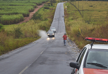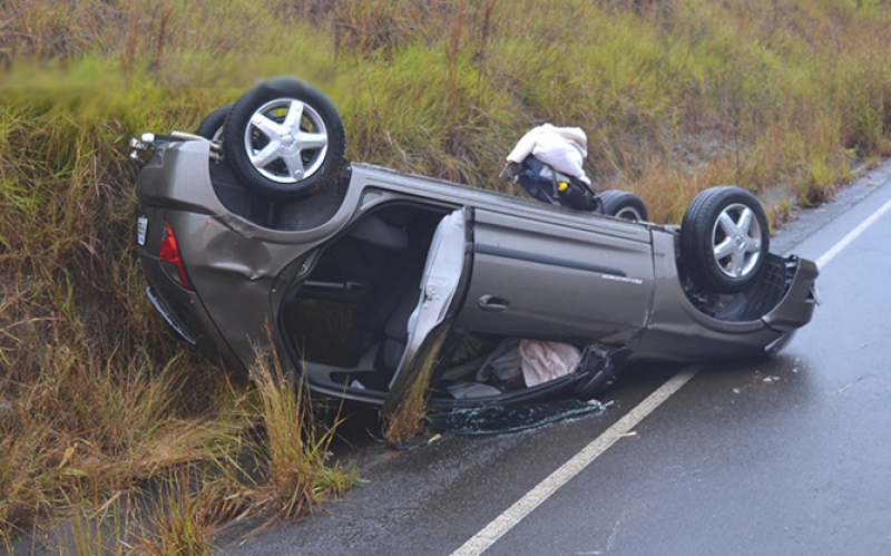 chuva. Ele perdeu o controle do veículo vindo a chocar-se contra um barranco, e capotando.