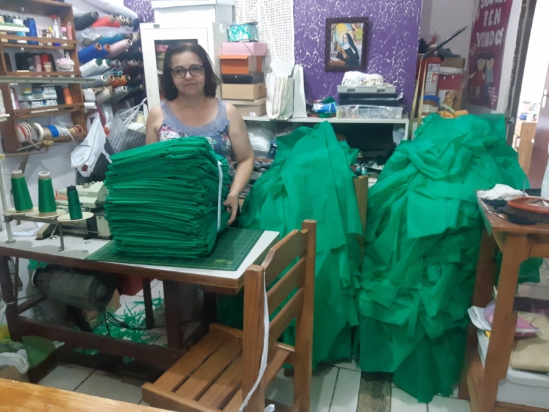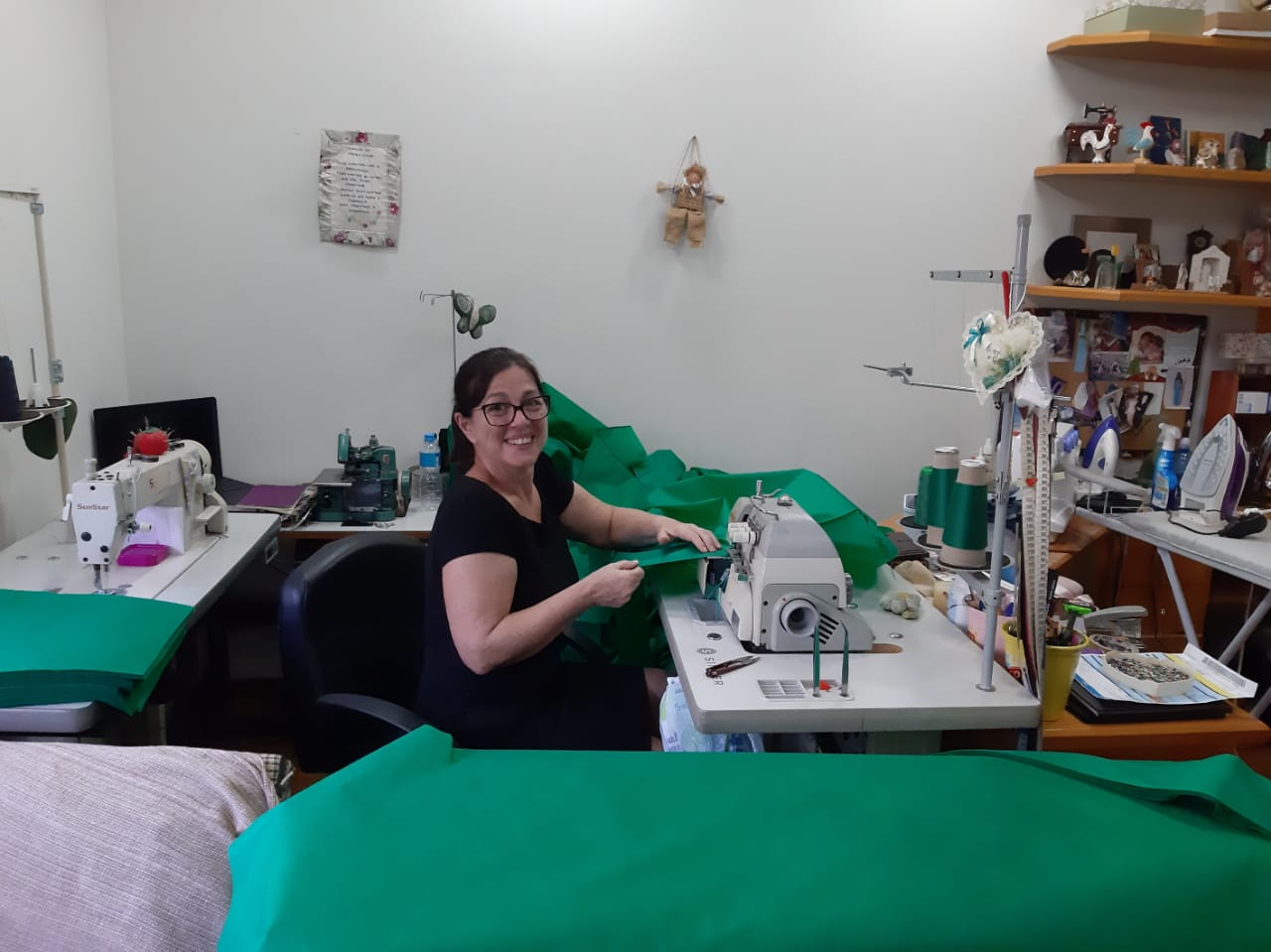 “Aí surgiu a ideia de fazermos um apelo por meio do aplicativo WhatsApp para a Paróquia Nossa Senhora da Rosa Mística, perguntando se entre os paroquianos havia algum empresário de loja de tecido que pudesse vender o tecido e também se poderíamos contar com alguma costureira voluntária".