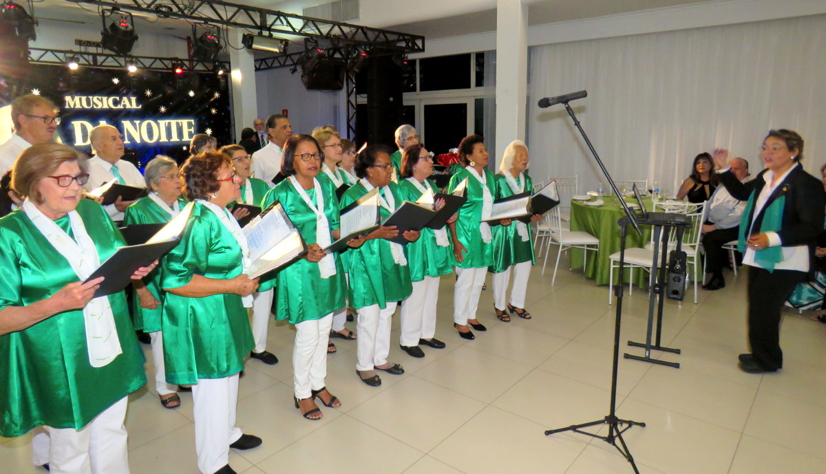 Apresentação do coral da Unimed Marília durante o jantar de confraternização do programa Caminhar com Saúde