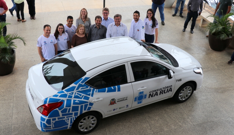 Veículo oficial do programa, devidamente identificado, faz exclusivamente o transporte da equipe. Se houver necessidade, transporte de paciente é feito por outro serviço, como o Samu ou a Central de Ambulância, conforme a situação.