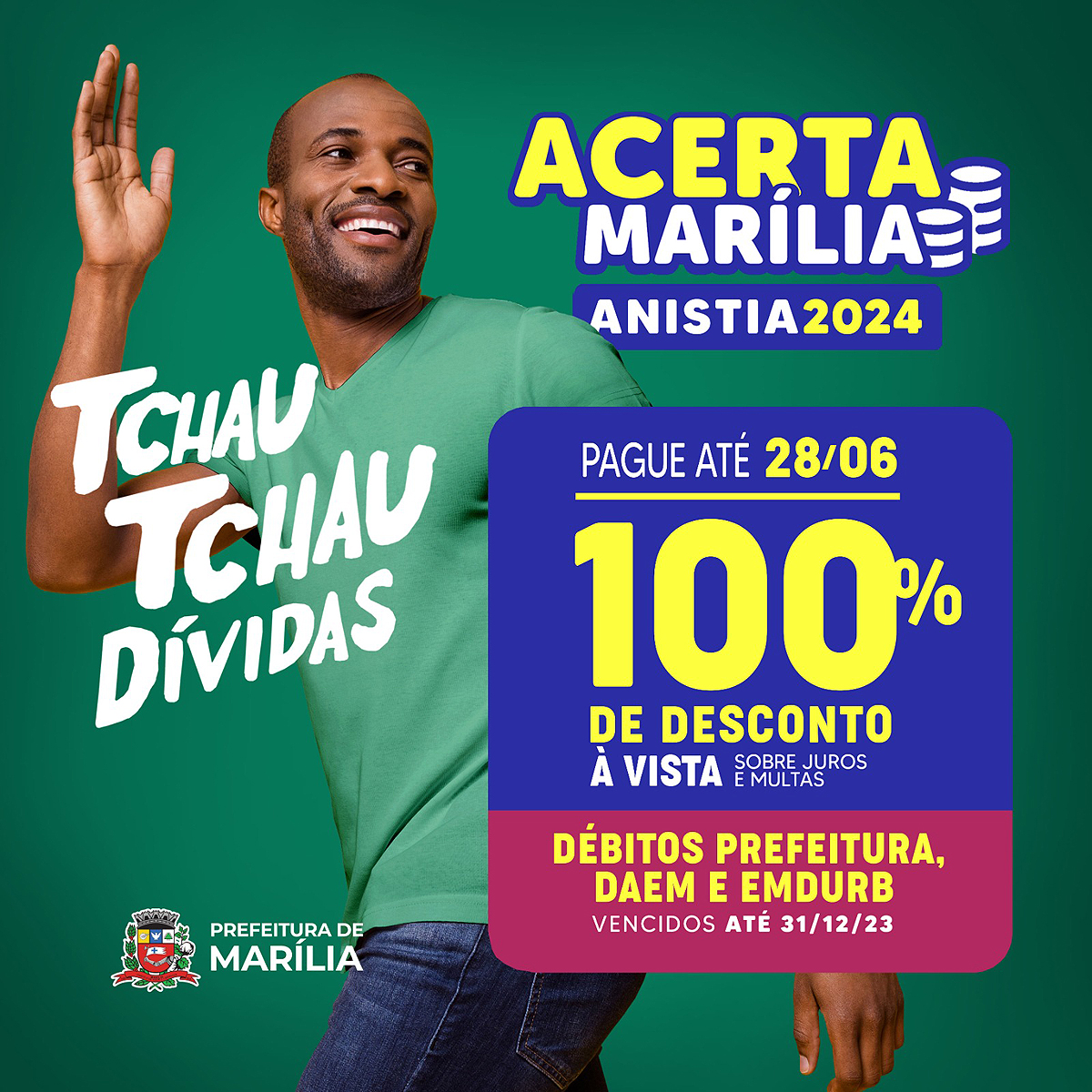 Os contribuintes têm até esta sexta-feira (dia 28), para regularizar os débitos com a Prefeitura Municipal de Marília, Departamento de Água e Esgoto de Marília (Daem) e Emdurb (Empresa Municipal de Mobilidade Urbana de Marília).