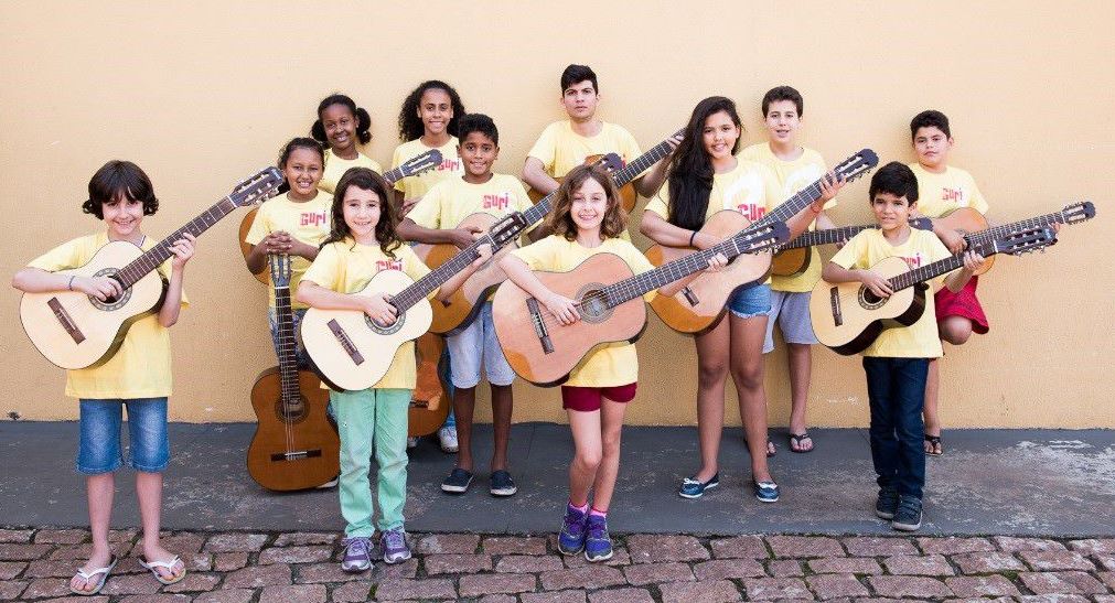 São 30 cursos gratuitos de música, oferecidos no contraturno escolar, para crianças, adolescentes e jovens de 6 a 18 anos incompletos.