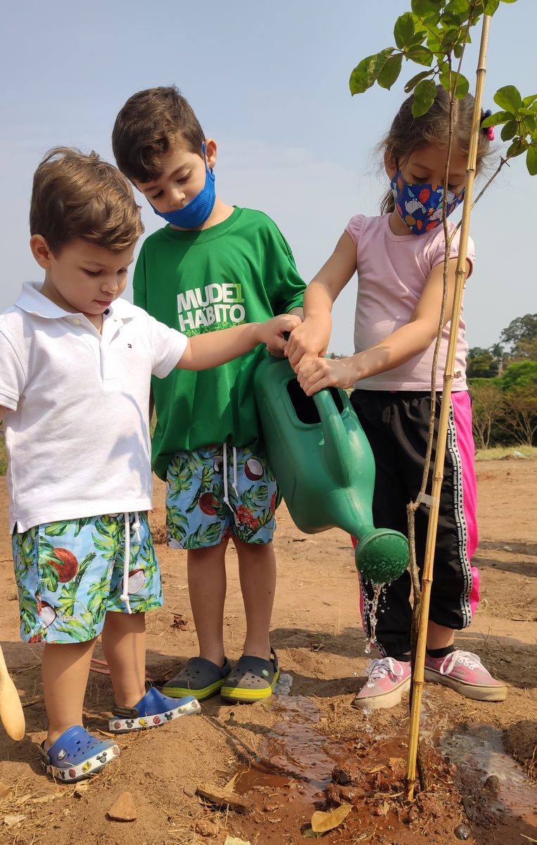 Antes de colocarem a “mão na terra” foi realizado um breve bate papo sobre a importância das árvores para nosso ecossistema onde as crianças puderam tirar suas dúvidas e relatarem experiências vivenciadas com a natureza.