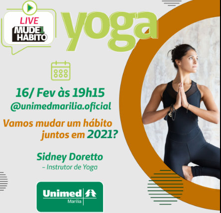 E nesta terça-feira à partir das 19h15 tem nova Live de Yoga com o Instrutor Sidney Doretto, através do projeto Mude 1 Hábito, no CEM (Centro de Especialidades Médicas da Unimed).
