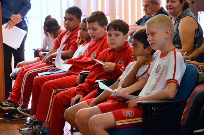 O presidente da Câmara, Luiz Eduardo Nardi, secretários municipais e diretores de escolas participaram da solenidade.