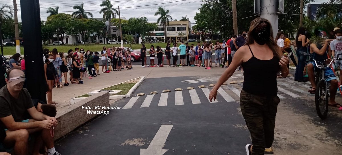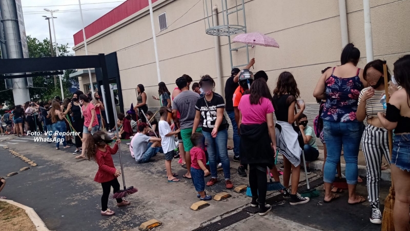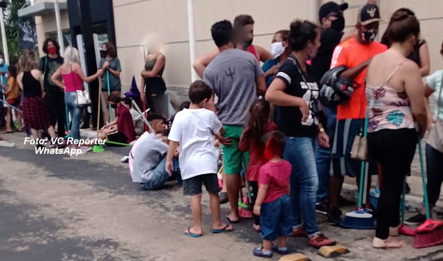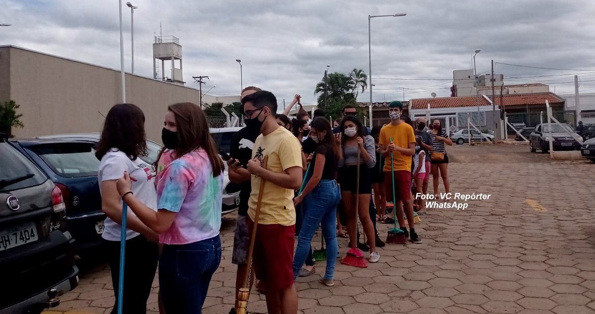 Quem está passando pela avenida Tiradentes, em Marília, neste sábado, vem presenciando uma cena inusitada. No drive thru de uma lanchonete, ao invés de carros, uma fila de pessoas com vassouras.