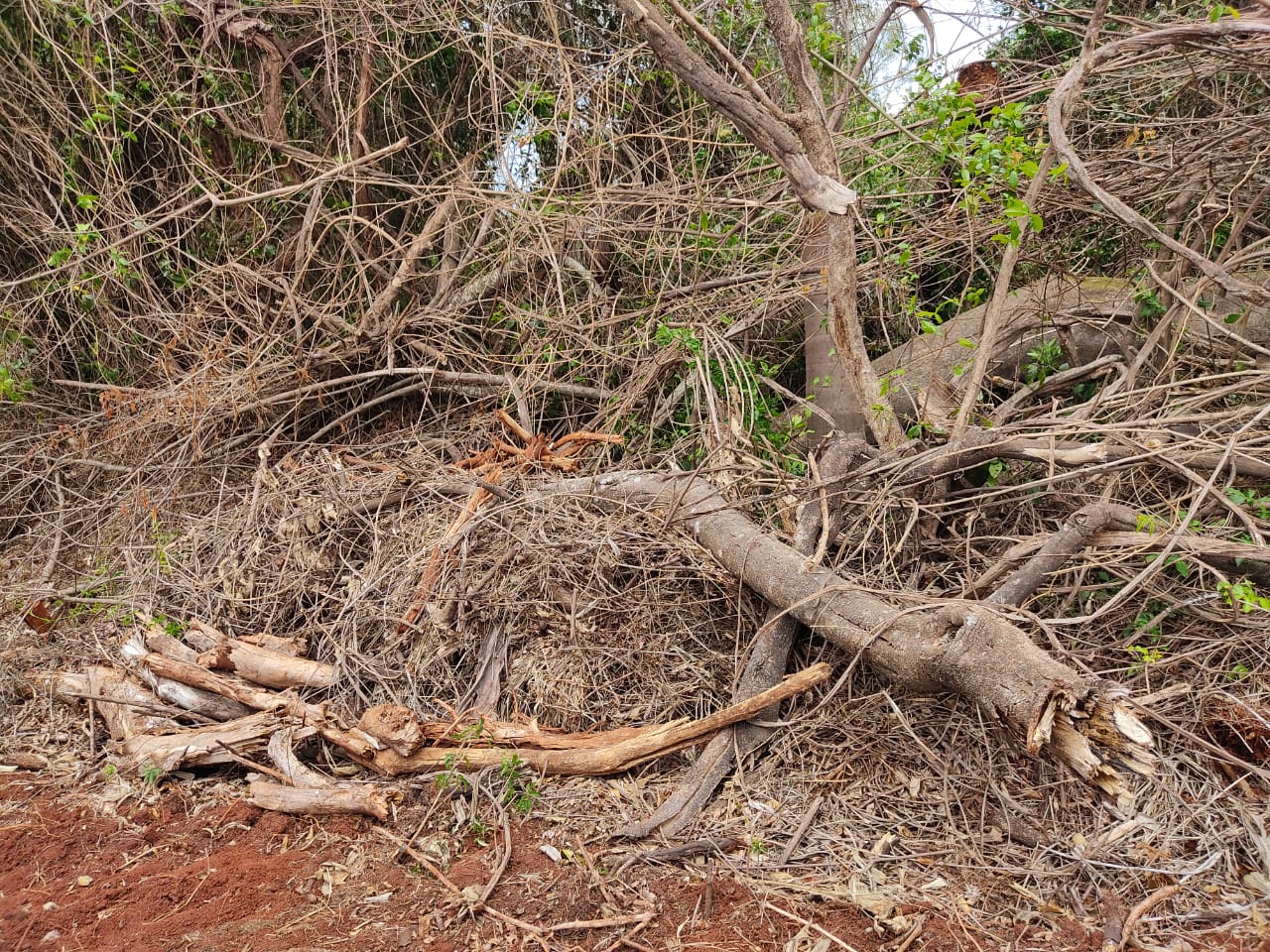 Em atendimento à denúncia, os policiais verificaram a extinção da vegetação nativa secundária em estágio inicial de regeneração e corte de 21 exemplares arbóreos nativos.