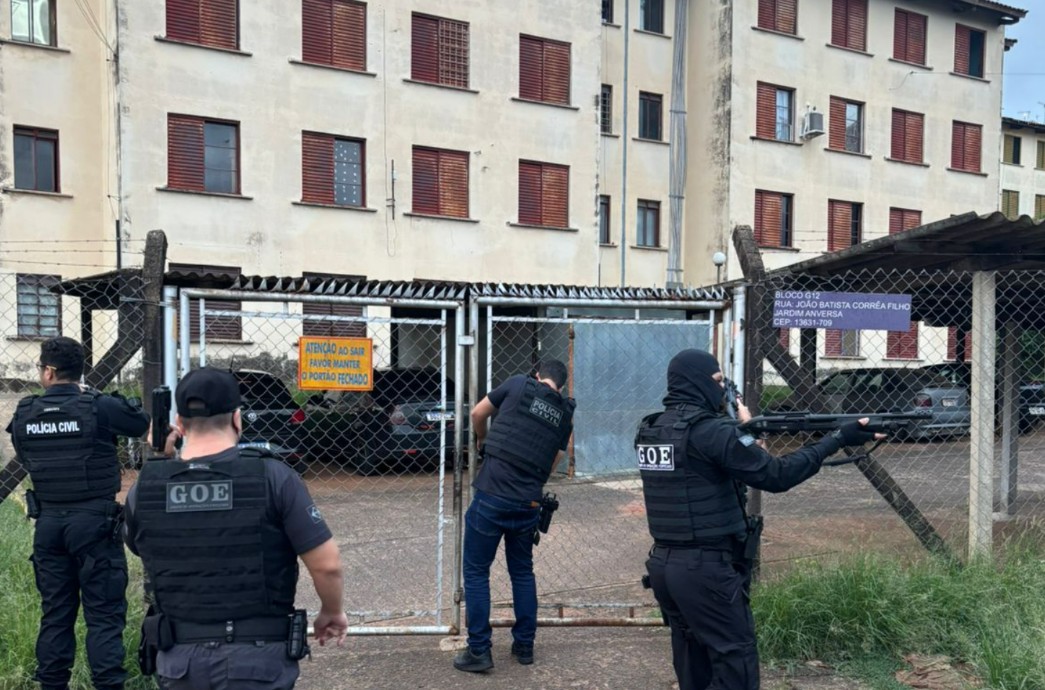 A operação mobilizou 48 policiais civis e cumpriu 26 mandados de busca e apreensão e oito mandados de prisão temporária. Dois envolvidos seguem foragidos, enquanto os demais serão apresentados à Justiça. Foram apreendidos dispositivos eletrônicos e objetos de interesse à investigação. As diligências continuam em andamento.