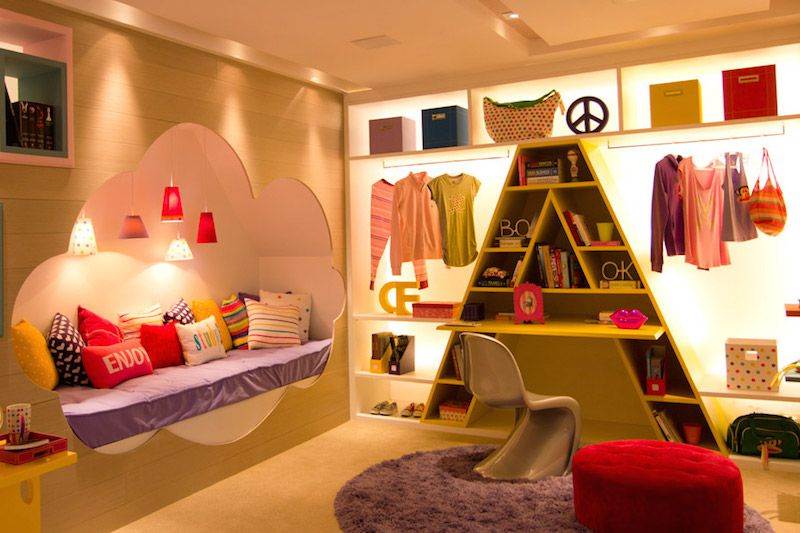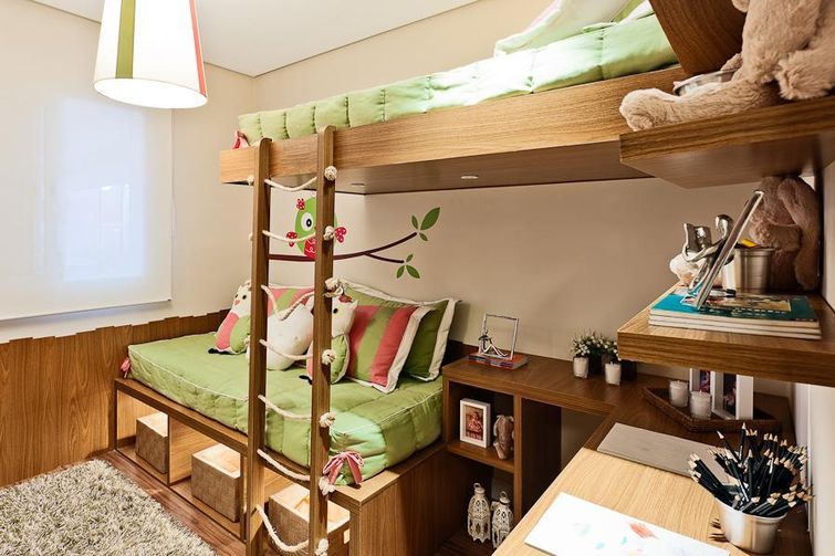 Além disso, a iluminação do quarto também é importante. Deve-se priorizar a luz natural que é fundamental para o desenvolvimento saudável dos pequenos. Quanto à iluminação artificial, vale dividi-la em direta e indireta: uma direta que ilumine adequadamente o ambiente e a indireta (por meio de arandelas, abajures, spots, etc.) que são adequadas para crianças que tenham medo do escuro e servem até mesmo para que os pais possam visitar o quarto dos filhos sem acordá-los.
