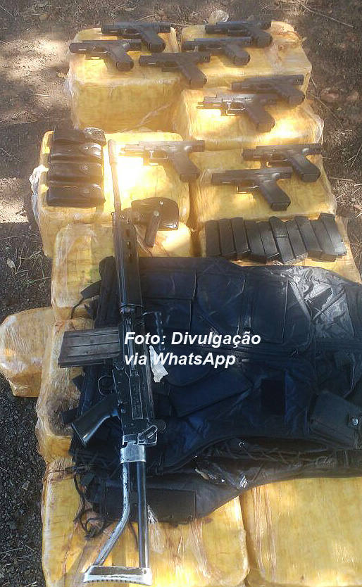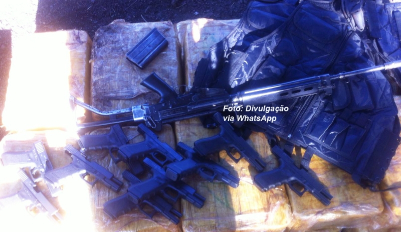Foram apreendidos 4.997 quilos de maconha, várias caixas de lança-perfume (em torno de 200 frascos), bem como um fuzil Fal 762 e 10 pistolas Glock (novas).