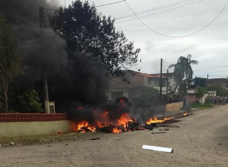 A queda de um helicóptero na tarde desta quinta-feira (8) provocou a morte de três pessoas e deixou uma ferida no bairro Paranaguamirim, na Zona Sul de Joinville, no Norte catarinense. A aeronave caiu na rua por volta das 16h, perto de várias casas, e pegou fogo depois. A Polícia Militar informou que foram encontradas duas armas na aeronave.