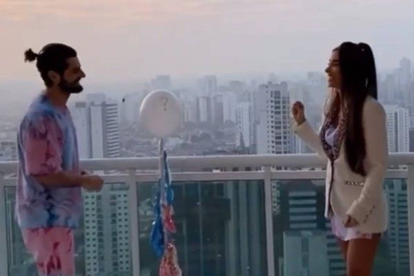 Da varanda do apartamento onde o casal mora em São Paulo, o DJ e a médica foram filmados por familiares enquanto estouravam os balões com papel picado.