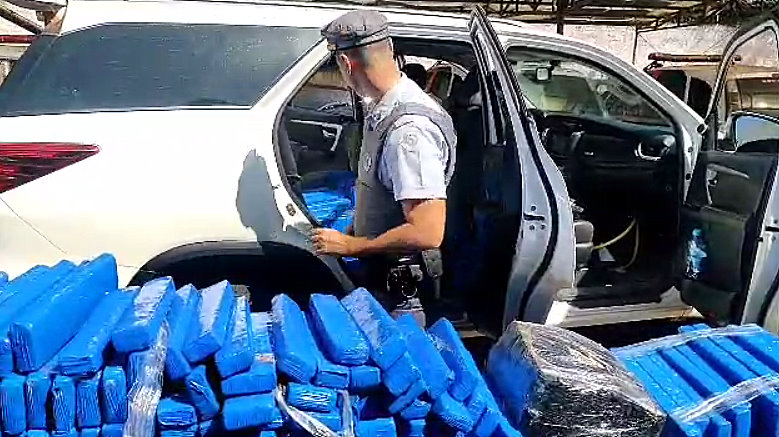 Rastreando as mensagens, os policiais conseguiram chegar ao veículo principal, uma caminhonete Hilux SW4, placas do Rio de Janeiro, que transportava grande quantidade de maconha.