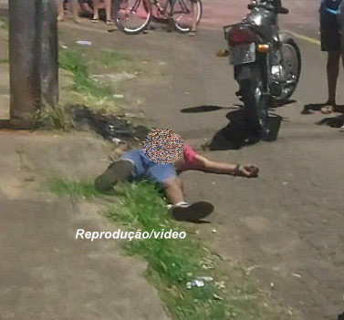 O rapaz desacordado ao lado da moto que foi recuperada na casa dele.