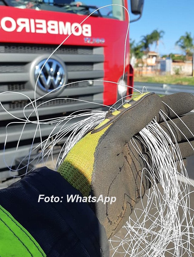 LOCAL PERIGOSO - Nesta mesma região, uma guarnição do Corpo de Bombeiros havia recolhido uma outra linha cerol que estava nas proximidades da rodovia do Contorno.