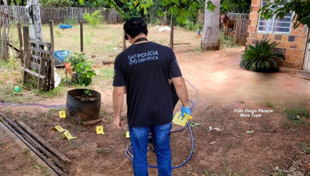 No local onde ocorreu o crime, os policiais apuraram que o rapaz foi atingido por cerca de 12 tiros de uma arma de fogo, provavelmente uma pistola calibre 380.