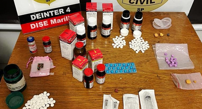 Um rapaz de 26 anos foi preso em flagrante pela DISE (Delegacia de Investigações Sobre Entorpecentes) acusado de vender drogas sintéticas e anabolizantes em Marília. Com ele, foram apreendidos mais de 500 compromidos, além de LSD, ecstasy e até Pramil (estimulante sexual).