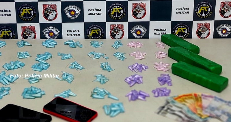 O maior foi preso em flagrante por tráfico e o seu comparsa, mesmo adolescente, ficou apreendido à disposição do Juizado da Infância e Juventude.