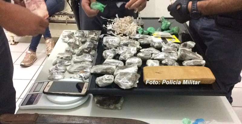 No local foi apreendida grande quantidade de drogas: 50 porções grandes e um tablete de maconha (pesando quase 2 quilos); 1.038 pedras de crack, uma balança de precisão.