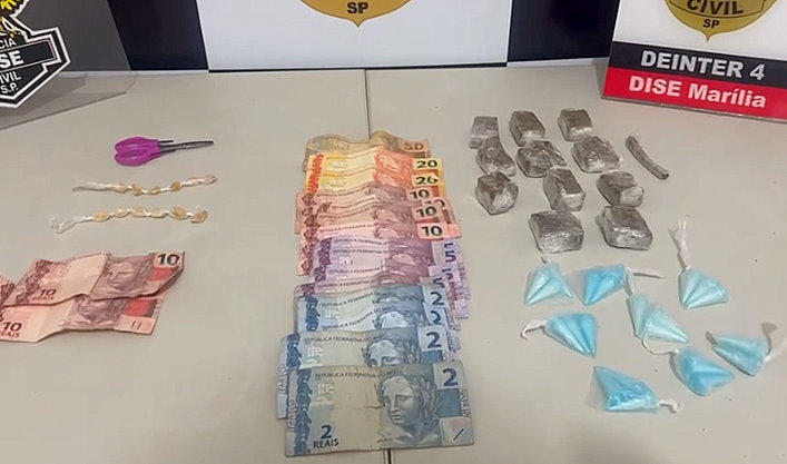 Os investigadores estavam no Parque das Azaléias, zona Sul de Marília, apurando denúncias de que haveria um rapaz vendendo drogas em um determinado local, onde há uma área de mata nos fundos. Ao encontrar o suspeito, ele tentou correr, mas não conseguiu fugir.