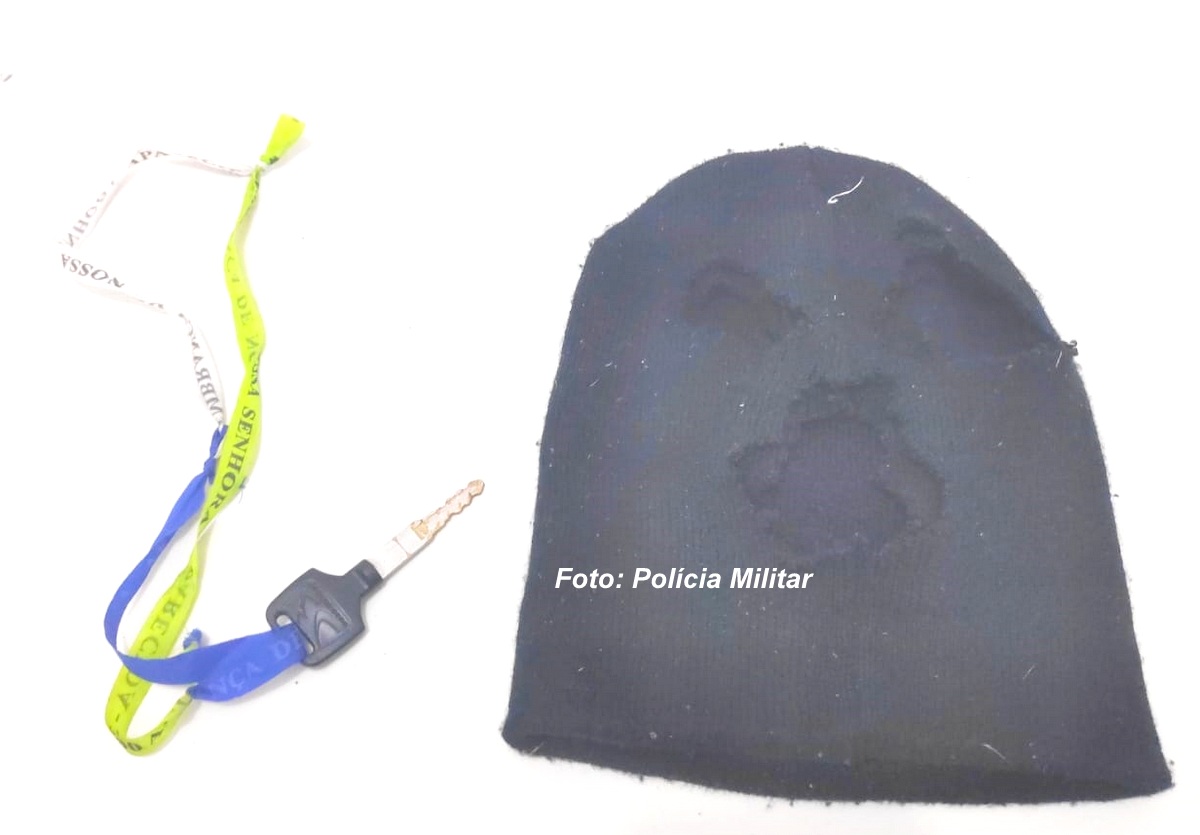 No interior do veículo, os PMs apreenderam uma chave falsa e touca usada em assaltos.