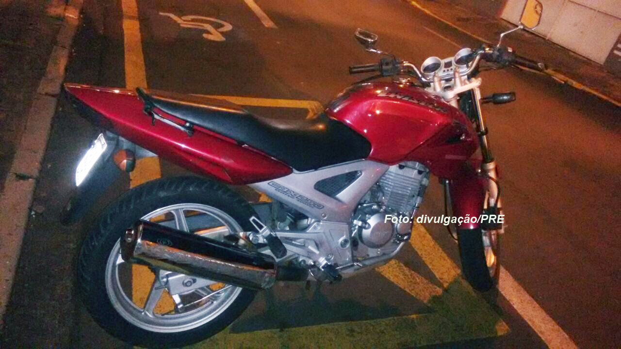Moto furtada e recuperada pela Polícia Rodoviária Estadual.