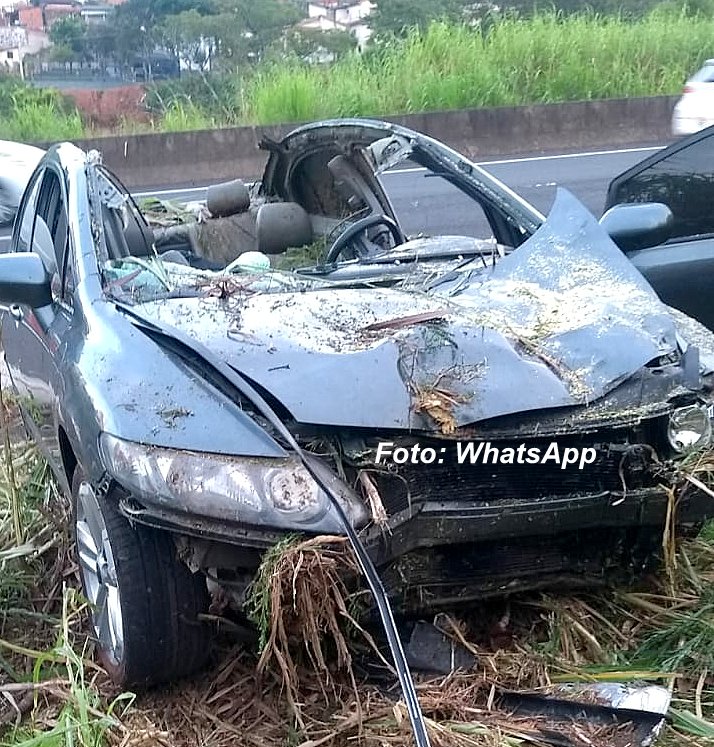 O motorista não conseguiu desviar. Com o violento impacto, ele morreu no local e o teto do veículo foi praticamente arrancado.