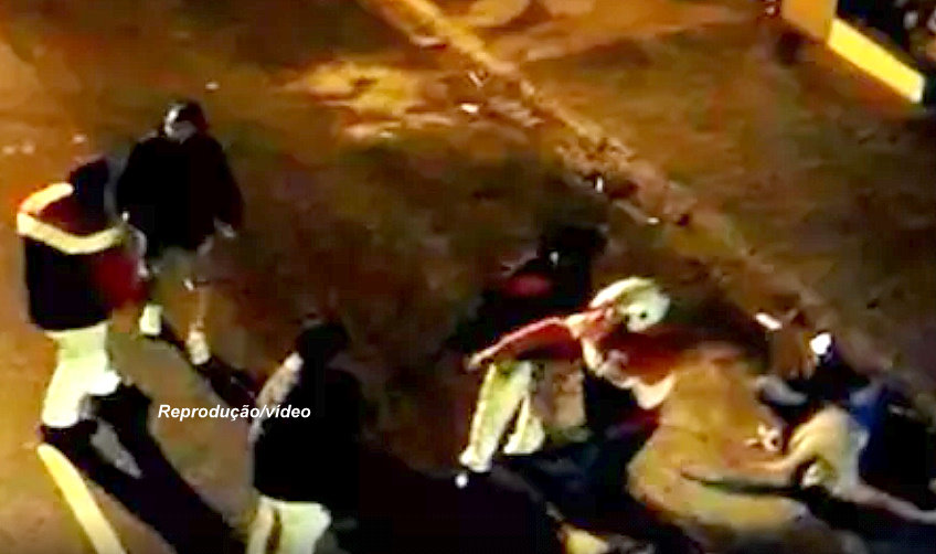 Pelas imagens, é possível ver a aproximação do grupo e as agressões contra a vítima, que fica desacordada ao lado da guia da calçada, sendo atingido com diversos chutes na cabeça até mesmo depois de já estar caído.