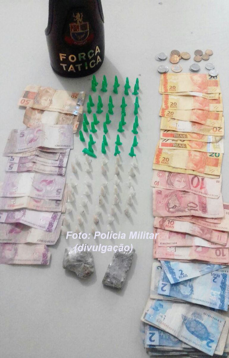 Os policiais da Força Tática faziam patrulhamento pelo bairro quando suspeitaram do rapaz que foi detido. Com ele, os PMs encontraram 40 microtubos de cocaína, 38 de crack, dois pedaços de maconha além de R$ 531,00 em notas diversas provenientes da comercialização das drogas. Caso está sendo apresentado neste momento (16h30) na Central de Polícia Judiciária (CPJ).