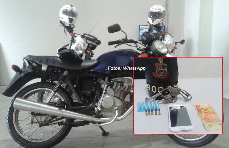 O pai autorizou a entrada dos policiais militares na casa, onde foi localizada uma moto modelo Titan sem placas, mas com a numeração intacta. Ela havia sido furtada no há uma semana, próximo da Unimar. Nos fundos da casa, foi apreendido um revólver calibre 22, com cinco munições.