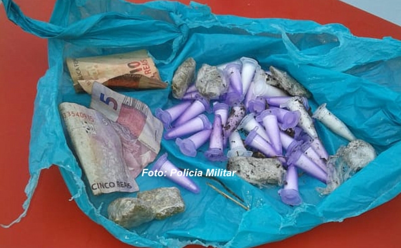 Ao perceber a aproximação da viatura, o "vendedor" jogou ao chão duas porções de maconha. Com ele, também foram encontrados R$ 10,00.
