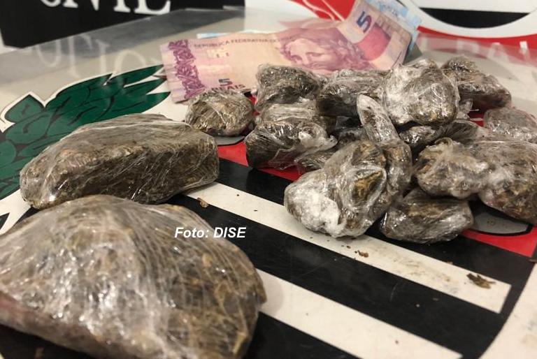 Porções grandes e pequenas apreendidas pela DISE.